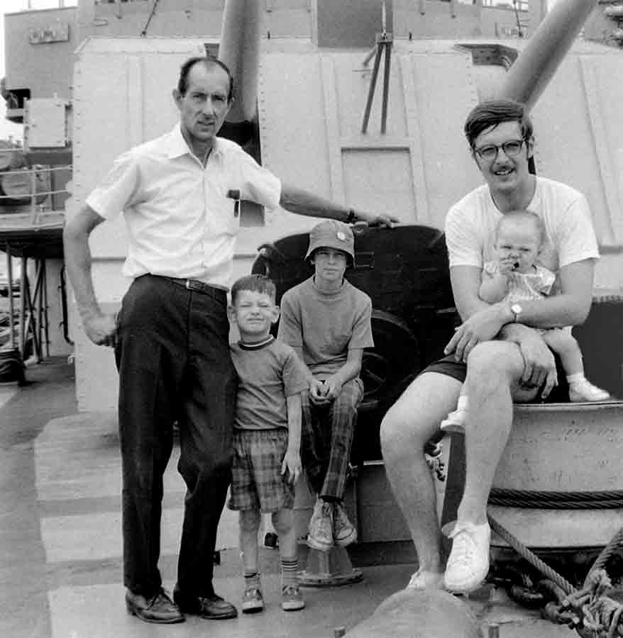 cousin Stephen and me with my now 40 yr old son MIchael on the foc'sle of the Fox 6. Sikorsky